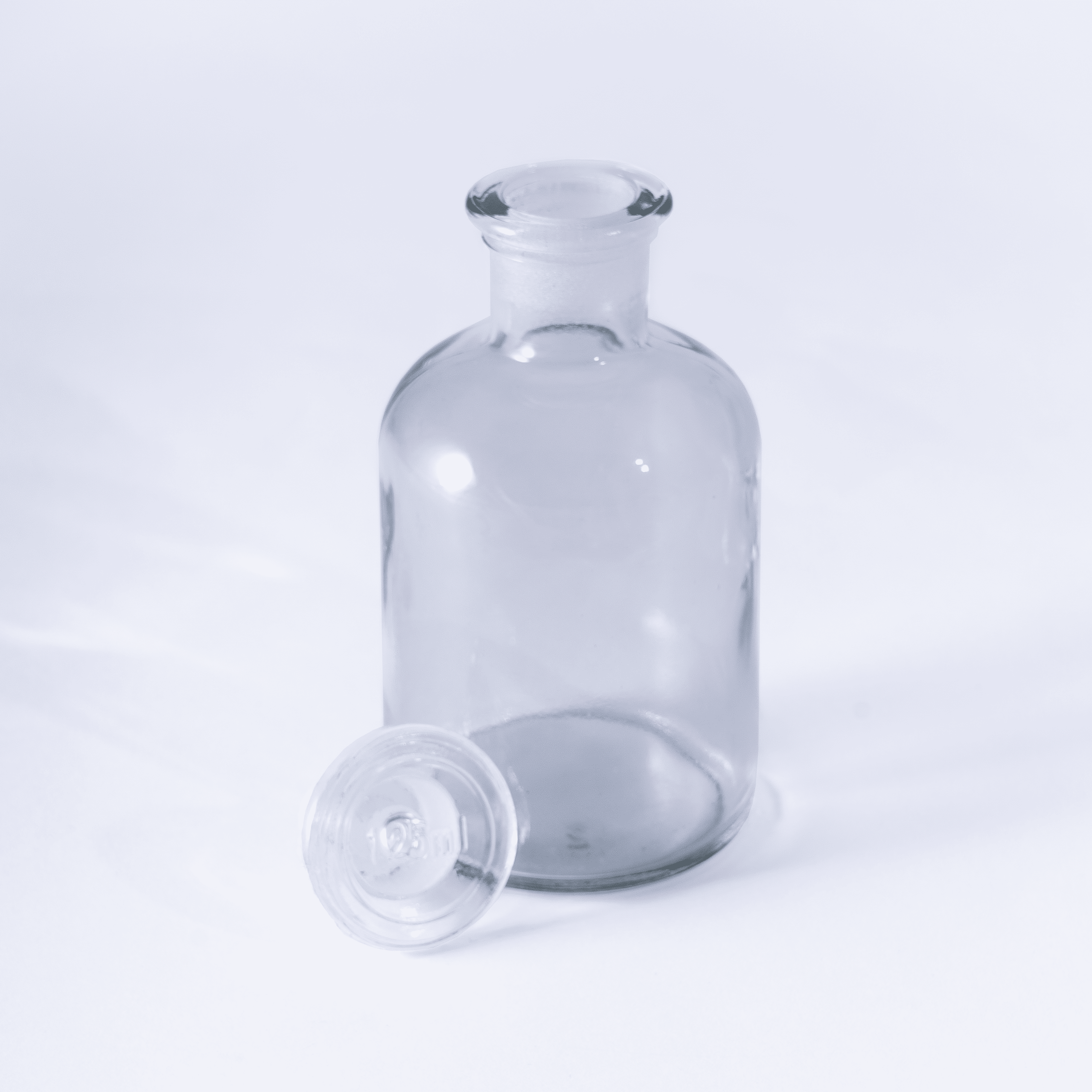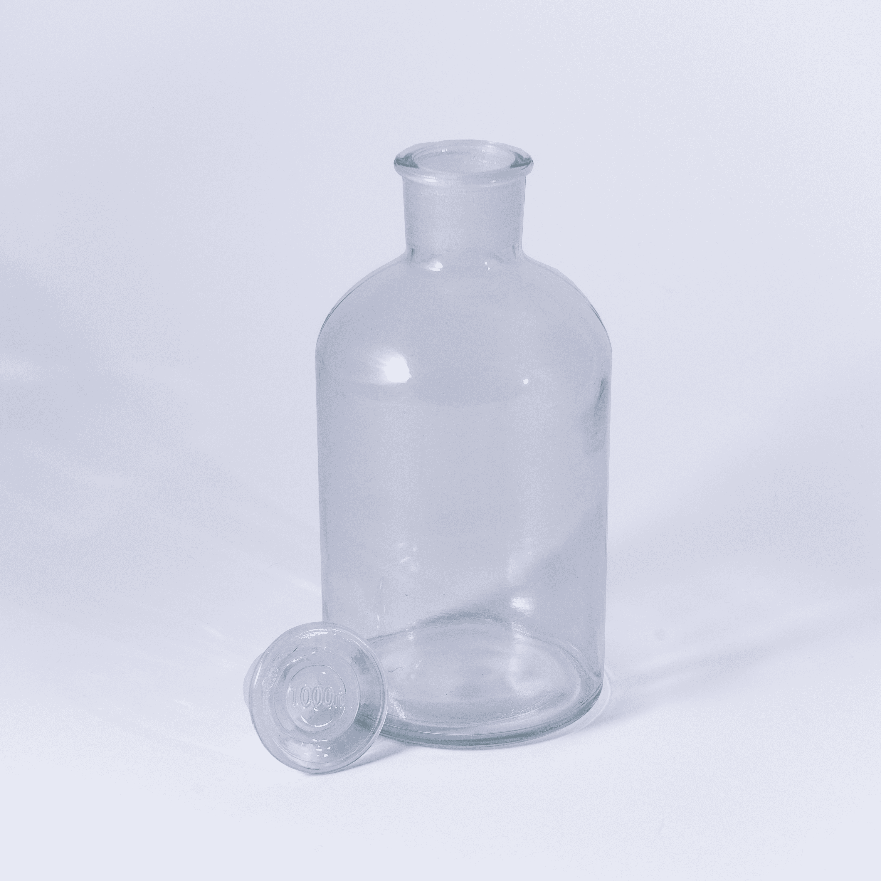 Склянки лабораторные из светлого стекла с узкой горловиной и притертой пробкой