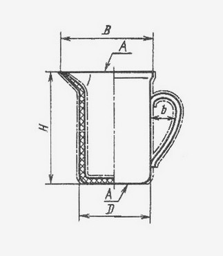 Кружка с носиком размером 8,5х13,5 см объемом 0,5 литров изготовлена из фарфора. Обладает прочностью, термо- и химической стойкостью. Служит для хранения и перемешивания кислых, щелочных, нейтральных растворов, нагревания жидкостей через асбестовую прокладку при температуре до 300°С.